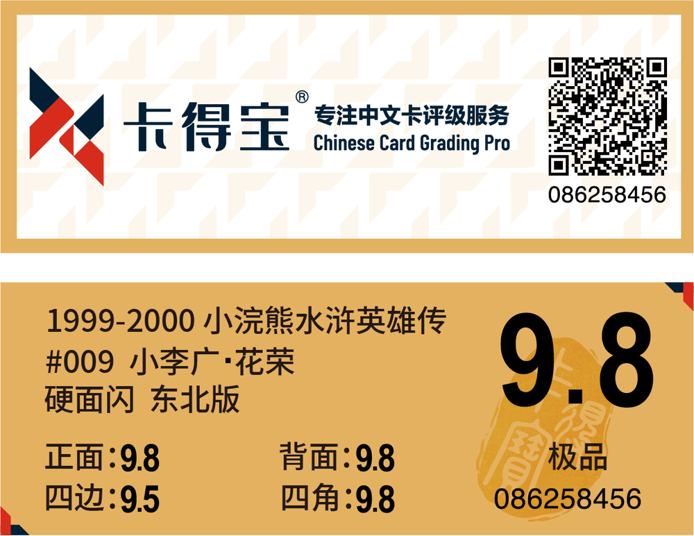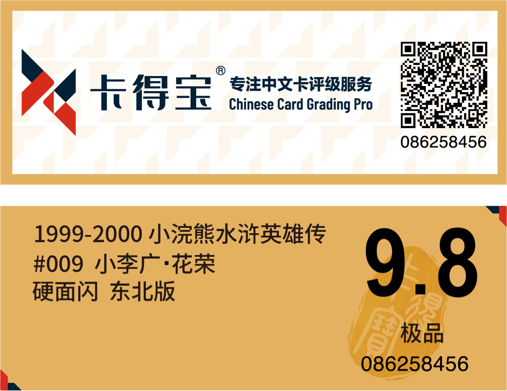 在此服务中,我们不对卡片的品相给出具体分数,所以评级标签中仅提供卡片的相关信息,以及卡得宝