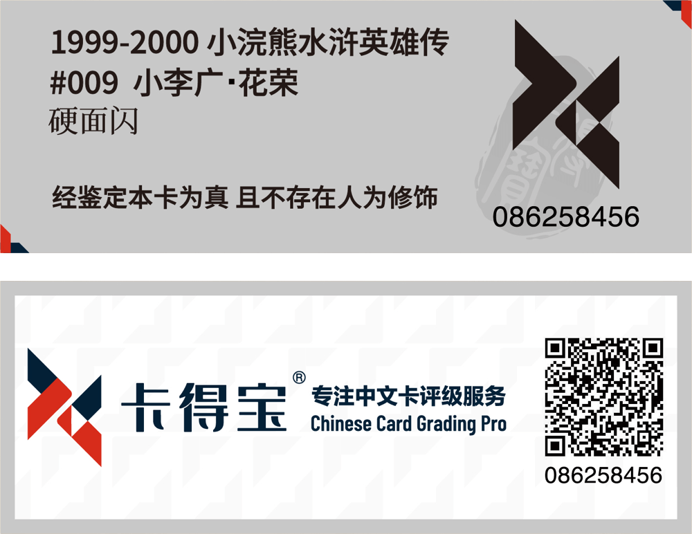 出具的真实证明。 换句话说,我们将首先对卡片的真伪进行鉴定:如鉴定为真,则对卡片进行封装;如鉴定为假,则原样退回用户。本服务中的评级标签统一采用银色标签。